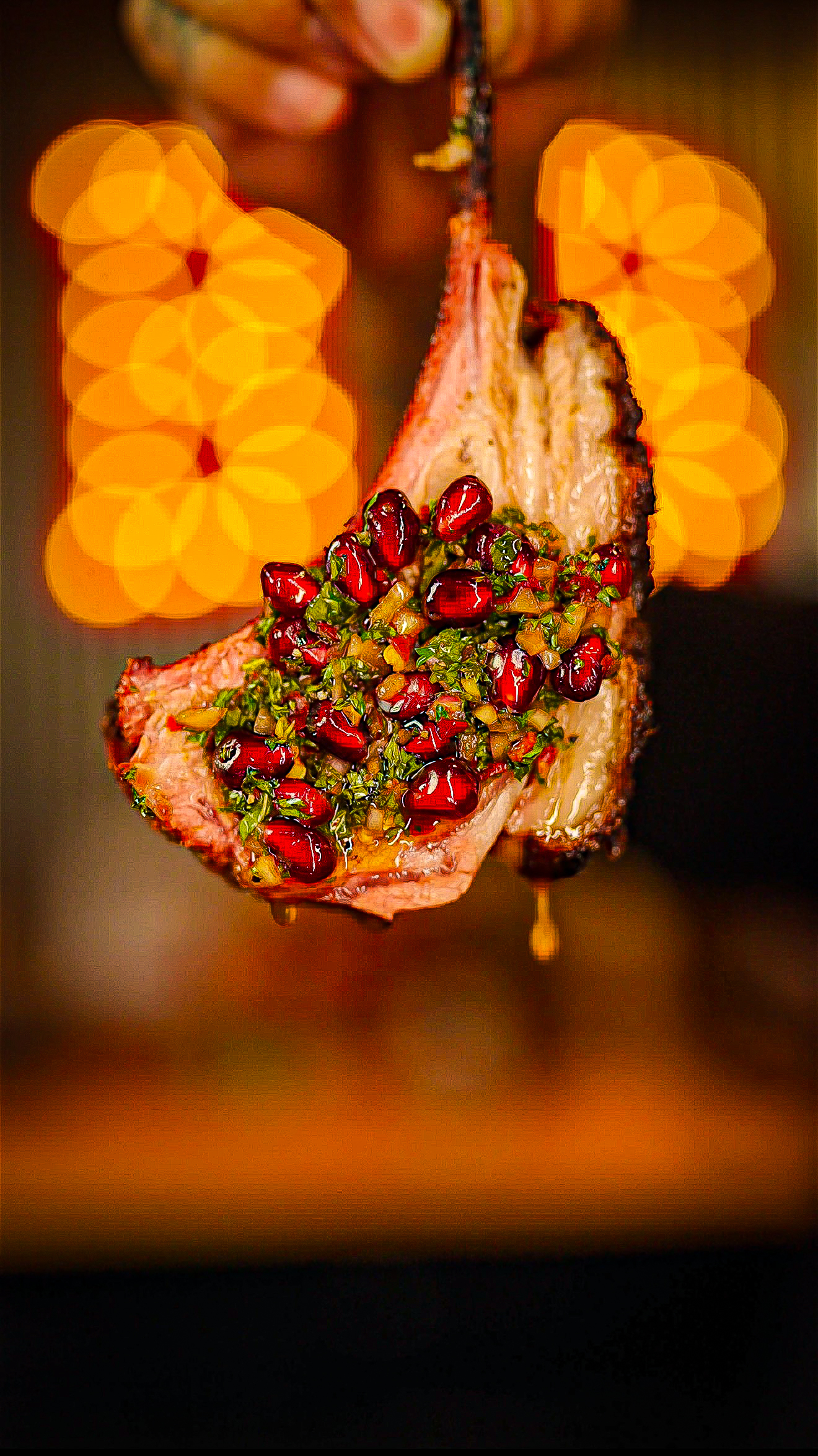 Prep Time: 30 Min | Cook Time: 4-6 hrs Ingredients Australian Lamb Rack from High Society Meats Cajun Honey Rub Spicy Garlicky Pomegranate Chimichurri 1